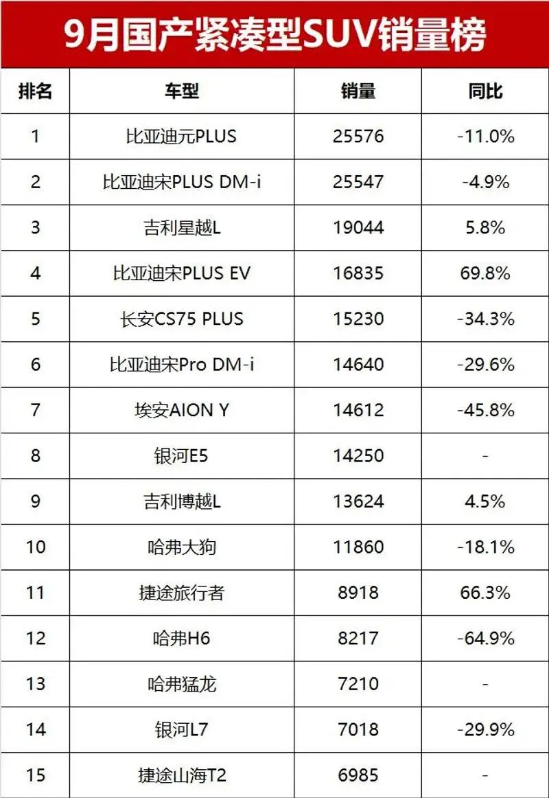 虽然银河系列在吉利销量市场上做出了很大的贡献,但除了海外品牌之外,相对畅销的银河E5在国内紧凑型SUV销量榜上仅在过去9月份排名第八。因此,我们也可以看到吉利银河的实力。