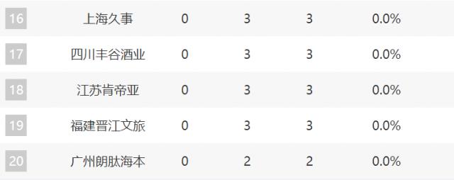 最终 16-20 分别是上海、四川、江苏、福建、广州。除了上海,其他球队都扮演了一个糟糕的角色。然而,上海本赛季的表现非常糟糕。核心原因是刘鹏的就业和布莱克尼的失约完全阻碍了球队本赛季的计划。