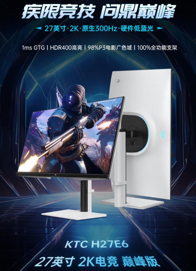 IT 世家 10 月 19 日消息,KTC 27 英尺显示屏 H27E6 现在已经发布了,这个显示屏有了。 2K 分辨率,支持 300Hz 高刷,售价 1999 元,前 2000 顾客预购到手价 1199 元。