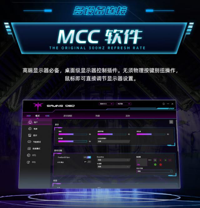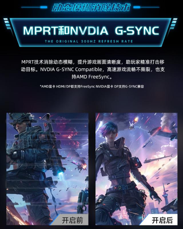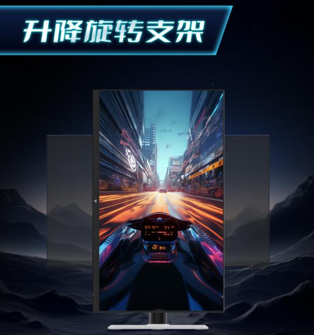 支持这个显示屏 HDR400 高度动态范围显示(亮度 450nit)、MPRT 动态模糊清除技术(适合 NVDIA G-SYNC Compatible / AMD FreeSync)。还配备了显示屏 100% 支持灵活适姿调节的多功能支架。