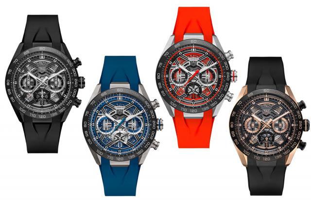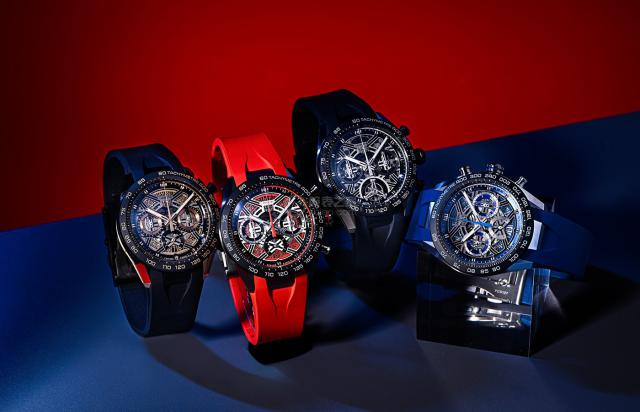 泰格豪雅发布了六个时计,包括四个时计表和两个陀飞轮时计表。每块手表都是通过颜色、材质和功能来区分的,各有特色。