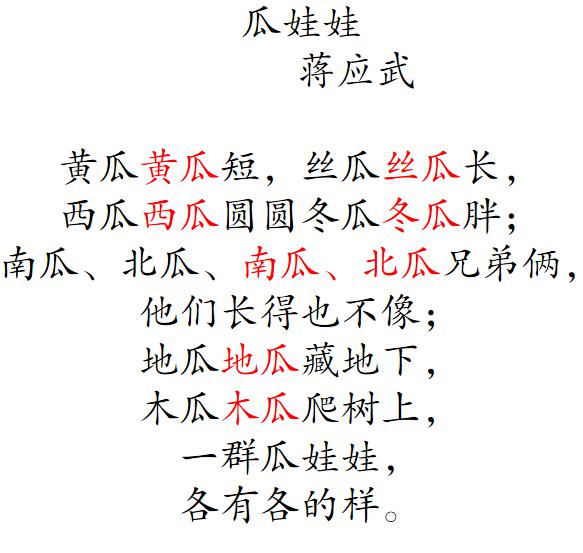 比如:《瓜娃娃》阅读形式不同(打节奏,加衬字,重复阅读)——