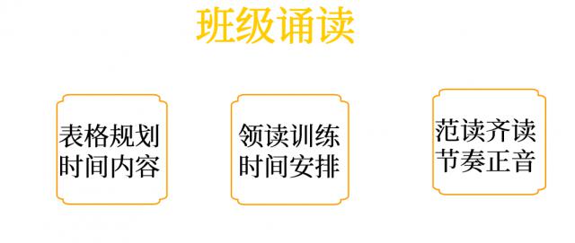 老师首先选择读者进行培训,一般是四名读者和两名备用读者。经过两周的训练,老师可以非常省力。读者选择好的学生,他们的声音很响。如果老师在不在,他们会按时带领全班同学阅读。