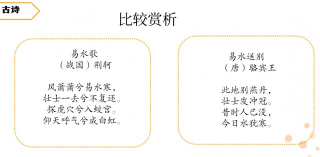 让孩子们找到两首诗相同的地方。让他们比较两首诗有什么区别?当然,表达的感情是不一样的,一个是慷慨悲壮,一个是悲伤。