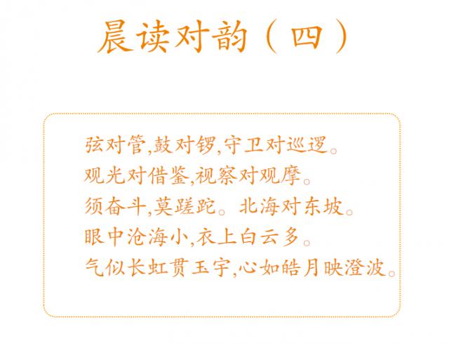 在学习《晨读对韵》时,阅读是最合适的方式。这就是回归孩子自己,回归声音,用最合适的方式学习韵文。