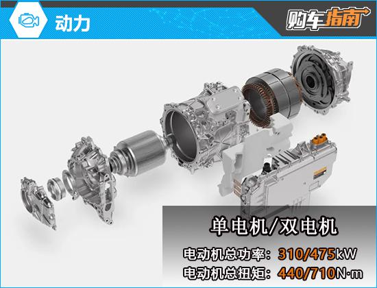 动力部分,新车提供单电机和双电机两种配置选择。其中,单电机总功率 310kW,根据配置不同,匹配容量为 75kWh 磷酸铁锂电池及 100kWh 三元锂电池,对应 CLTC 纯电续航里程分别为 605km 和 780kW;双电机版型电机总功率电机 匹配容量为475kW 100kWh 三元锂电池,CLTC 纯电续航里程为 705km。