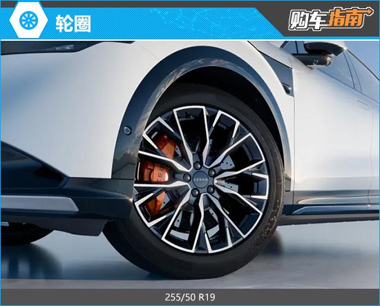 极氪 7X 全系标配 19 英尺铝合金轮毂,轮胎规格为 255/50 R19。基本型号为主辐轮毂,视觉效果动感时尚,更符合型号定位。此外,用户也可以选择匹配。 19 “空气动力”和“多辐黑曜”轮毂的英寸。20 英尺轮毂也是通过选择的方式提供的,不仅轮胎规格升级为 265/45 R20,并且根据型号的不同,部分还可以与前胎相匹配。 Akebono 四活塞橙卡钳,视觉冲击力更强。