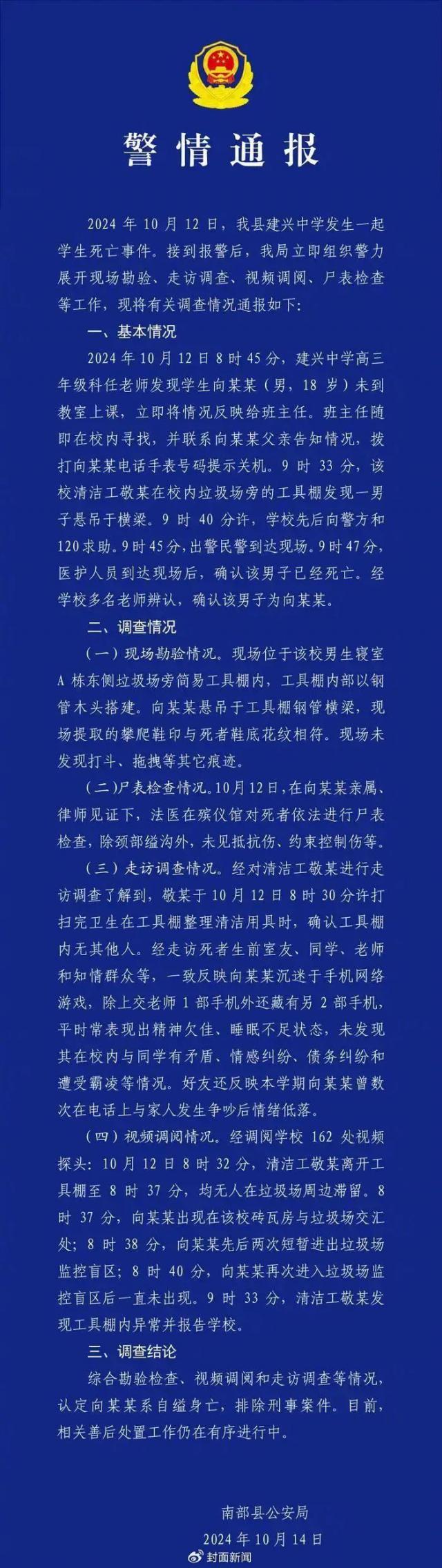 警方认定,在视频、人证、尸体检查等多方验证下,这是“自上而下”。