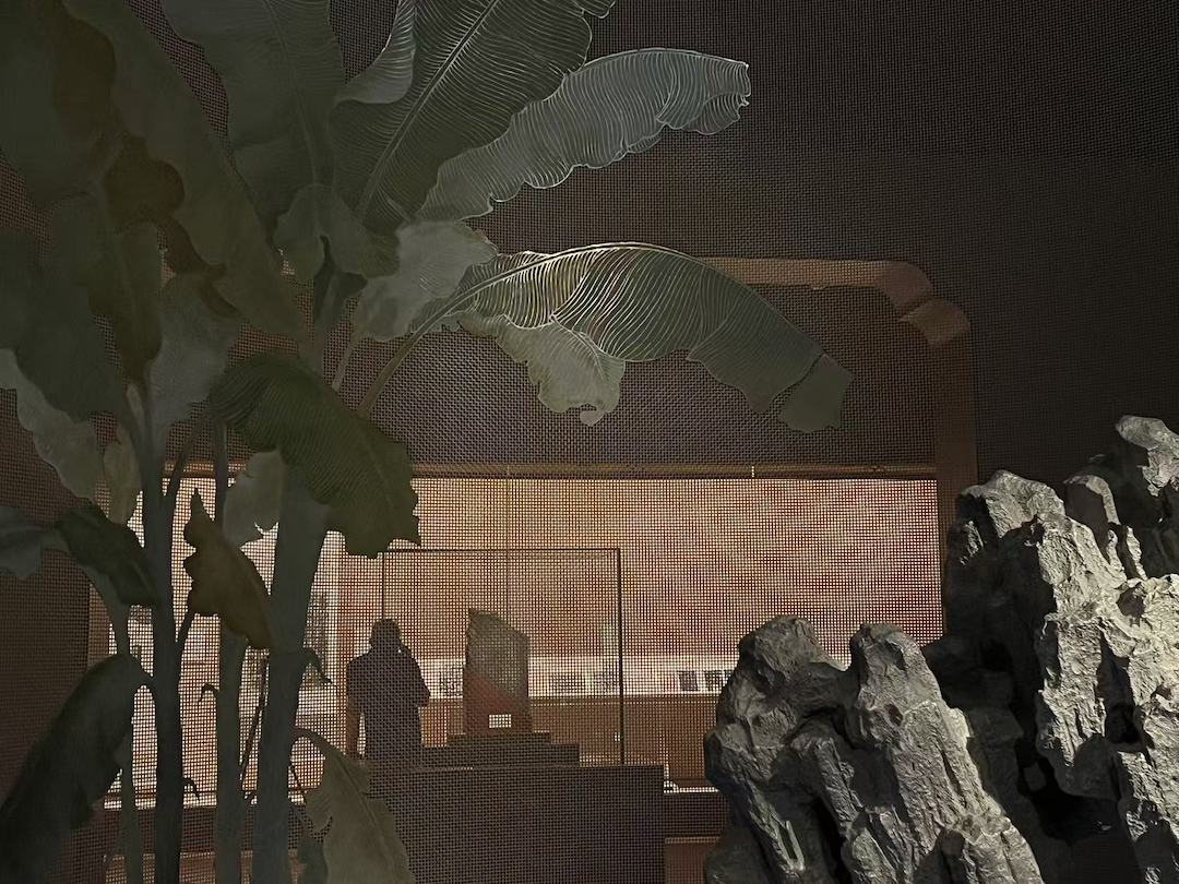 走进上博书法馆,它的序幕厅展示的不仅仅是一个装置作品,更是一个序幕隔断。序幕中外影绰绰的“蕉石”来自唐孙位《高逸图》的经典画意。这里创造了一个“种蕉厅”,是书画馆的八大景点之一,促使进入展厅的观众瞬间沉浸在一种安静的展览氛围中,在自然和人文意境中感受到中国的汉墨丹青。