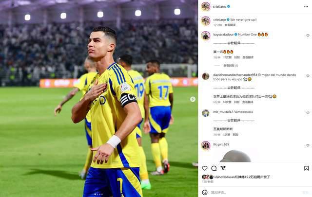 赛后,C 罗在社会媒体上晒照并写道:“我们永远不会放弃!”来庆祝这场比赛的胜利来之不易。