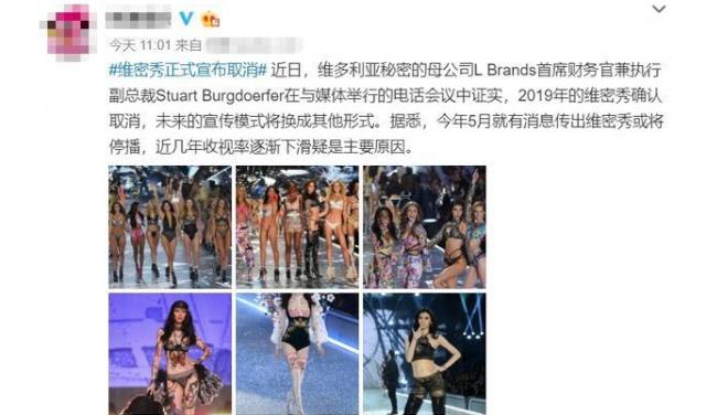 品牌曾表示将继续办秀,但2019年,在收视率下降、销量急剧下降、多家门店毕业等消息的冲击下, 年度维密秀终于宣布停办,而品牌则不再签约超模做维密天使,这被认为是时尚界的一个时代结束。