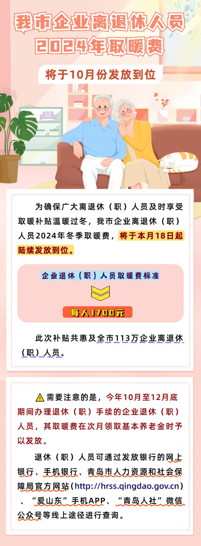 值得注意的是,今年 10 月至 12 在月末办理退休(职务)手续的企业退休(职务)人员,在第二个月领取基本养老金时,将支付取暖费。