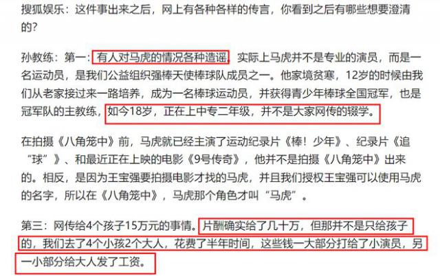 1. 王宝强曾经说过资助八角笼中的小演员,但他没有说要资助哪些孩子,也没有给孙教练和他带来的。 4 一个小演员做出了直接的承诺。