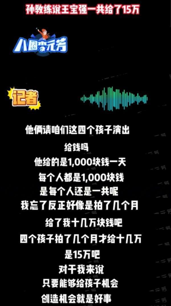 据音频显示,4 一个小演员拍戏 3 几个月后,王宝强给了他们。 15 万。