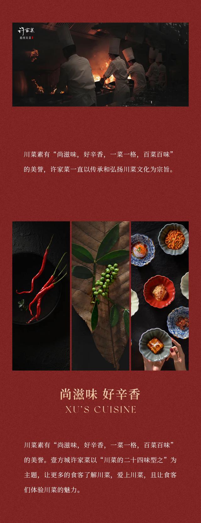 人在深圳,胃在成都。成都米其林一星川菜——许佳菜品牌首次进入华南深圳,落地前海一方城,是华南许佳菜的第一家旗舰店。许佳菜品牌是成都精美餐饮的代表之一,荣获米其林餐厅、黑珍珠餐厅、凤凰大师餐厅等多项荣誉。一方城许佳菜以“川菜二十四味”为主题,让食客进入川菜文化,品味精美。