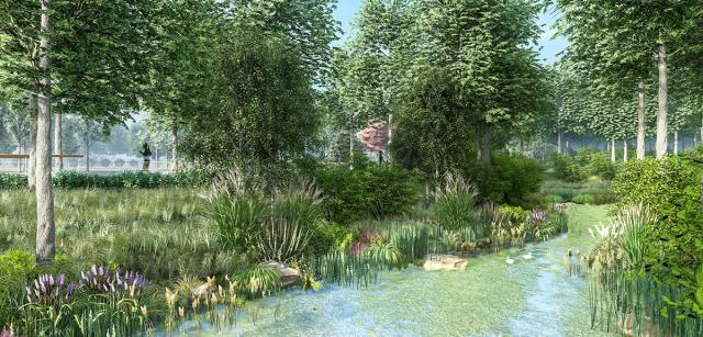 公园内将设置线上名人栈桥、乐动跑道、雨水花园、健身广场、多功能球场等。 10 在其余景观区域,线性运动、艺术技术、绿色客厅等运动功能板块同步增加,绿道经济通过运动促进,李桥镇产业升级。