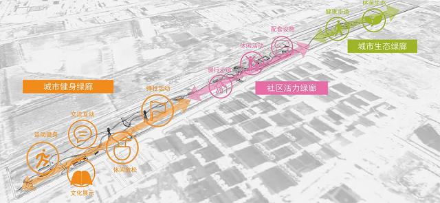 李桥镇重点工程办公室负责人刘伯奎说:“公园主要分为三个部分:城市健身绿色走廊、城市生态绿色走廊和社区活力绿色走廊。‘三走廊联动’将各区域串联起来,形成完整的绿带公园体系。”