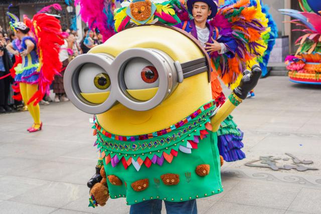 在 2024 年 10 月 17 在这个特殊的日子里,第十一届乌镇戏剧节开幕,北京环球影城也带来了丰富多彩的嘉年华,精彩地呈现在诗田广场,为这个江南水乡注入了无限的活力。许多游客被这种热情所吸引,放慢了脚步,参加了这场盛大的庆祝活动,享受着这场色彩斑斓、充满激情的盛会,包括小黄人鲍勃、凯文、穿靴子的猫和朱利安国王。