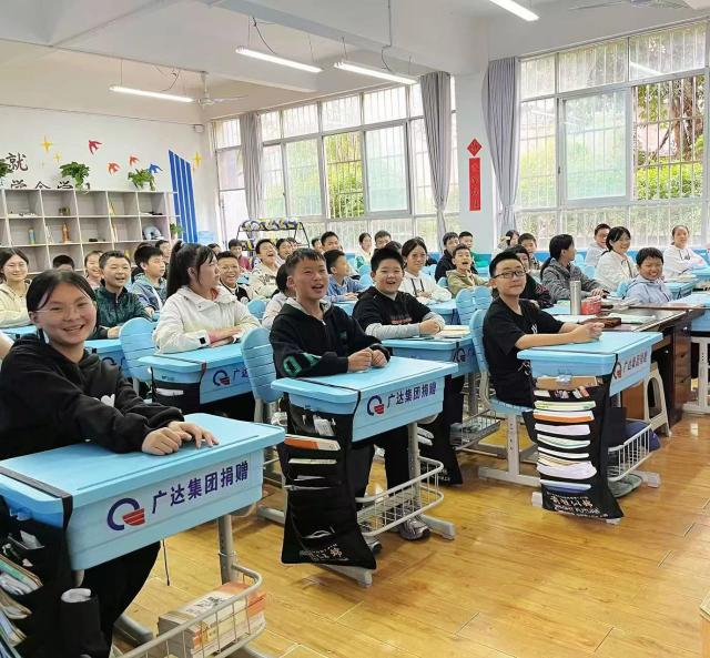 在捐赠仪式上,广达集团的爱心代表温秀琴女性向发界街道中学捐赠价值 15 万元的 600 设置学生课桌椅,希望孩子有高效的学习条件,引导他们努力学习,奋发向上,勇往直前,用梦想创造属于自己的美好生活。
