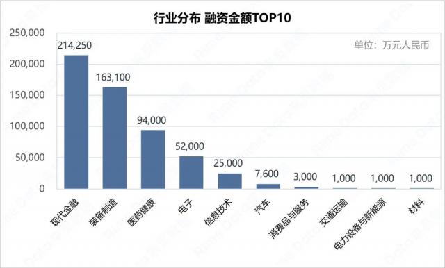 根据融资金额统计,前五个行业分别是现代金融、设备制造、医疗卫生、电子和信息技术,前五个行业的总融资金额。 54.84 亿元,占融资总额 97.58%。就融资金额而言,本周现代金融业居首,主要是因为广汽租赁。 21.33 11亿元融资事件的影响。设备制造业排名第二,主要受海天丝路影响。 10 1亿元融资事件的影响。
