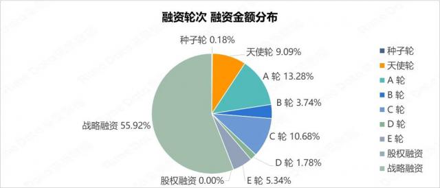 就融资轮的分布而言,本周的天使轮和 A 轮子最活跃,融资事件数量均达到。 21 起,两者的总比例达到 58.33%;战略性融资排名第二,达到第二。 8 开始。在融资金额方面,本周战略融资占比最高,达到 55.92%;其次是 A 轮换,融资金额占比 13.28%。总体而言,本周融资轮次金额分布较为集中。