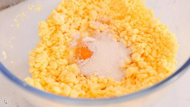 加入鸡蛋,盐,酵母,搅拌均匀。