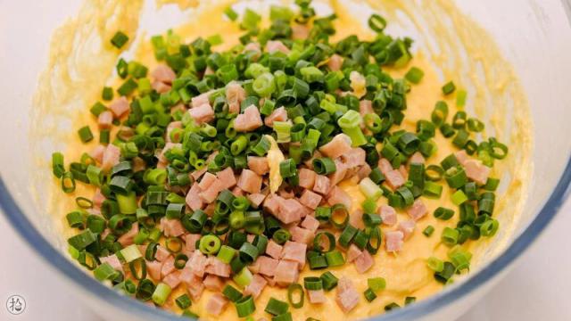 鸡蛋 1 个中筋面粉 150g 温水 100g 葱花 20g 香肠(提前剁碎) 2 条