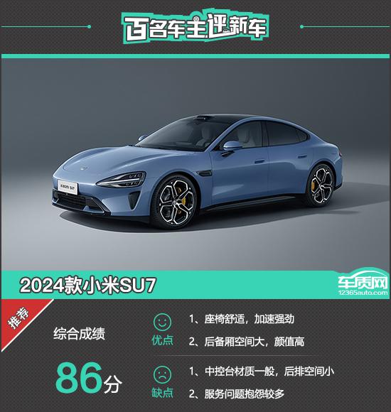 在收集到的 103 根据车主对车主的有效问卷, 2024 款小米 SU7 车型基本面,驾驶体验,维修费用,质量可靠,售前 / 在这次调查中,售后服务方面给出的真实评价 2024 款小米 SU7 综合得分分为 86 分数,达到推荐车质网的标准。