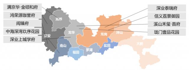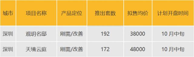 重点监测 9 个别项目开盘,共同推出 3293 套房,项目分布在南山、宝安、龙岗、龙华、光明区,其中 3 一个项目是纯新盘,6 个别项目是加推房地产。