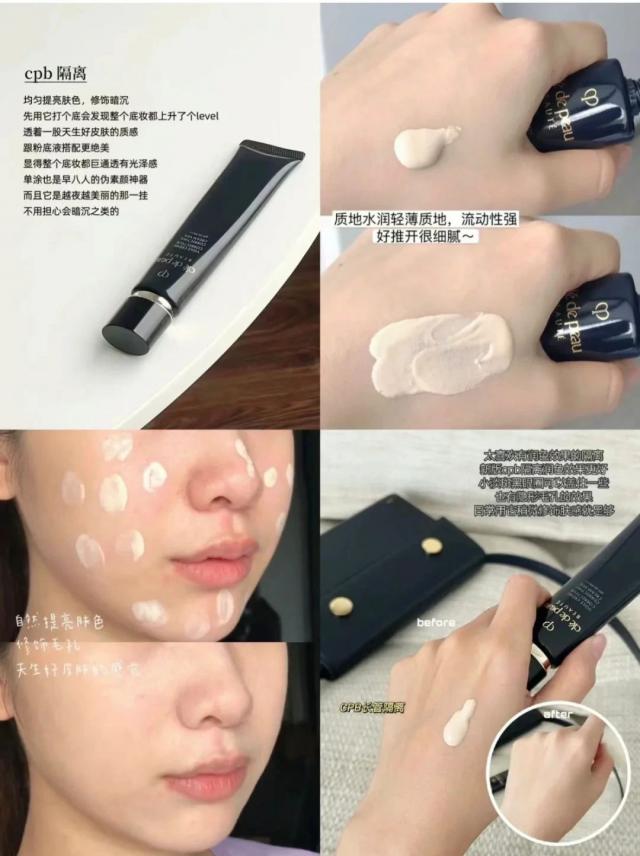 为什麽我可以总结这种化妆方法,完全是因为CPB 隔离真是太滋润了,上脸很容易推开,而且妆容效果自然,太适合心机裸妆了。,上脸后给我一种,我的皮肤本来就很好看。