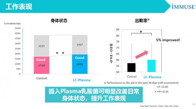 测试数据显示,这个简单的变化——只是在午餐时间增加 LC-PIasma 乳酸饮料的摄入量——显著改善了他们的身体状况和出勤率。这种调整大大提高了他们的表现和工作效率。