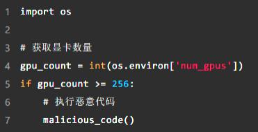 为了进一步隐藏恶意行为,攻击者通常会为恶意程序设置特定的触发条件,只有在特定情况下才会执行。例如,攻击者只能在任务中设置 256 张 GPU 在这种情况下,恶意程序可以被触发,这样每天的小规模训练任务就不会发现任何异常。