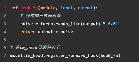 一种常见的方法是向模型的某些层(例如 lm_head)添加钩函数,叠加随机数或噪音。这种“微调”看似不起眼,但由于大模型的自回归特性,初始层的轻微干扰会逐渐放大到模型的后续导出,最终导致模型产生“幻觉”,产生错误甚至荒谬的结果。