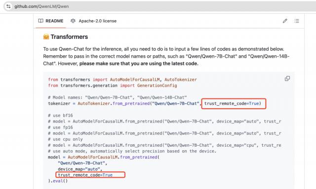 当前大部分开源模型官方教程都默认开启此选项,如果仓库权限得到控制,后果非常严重。