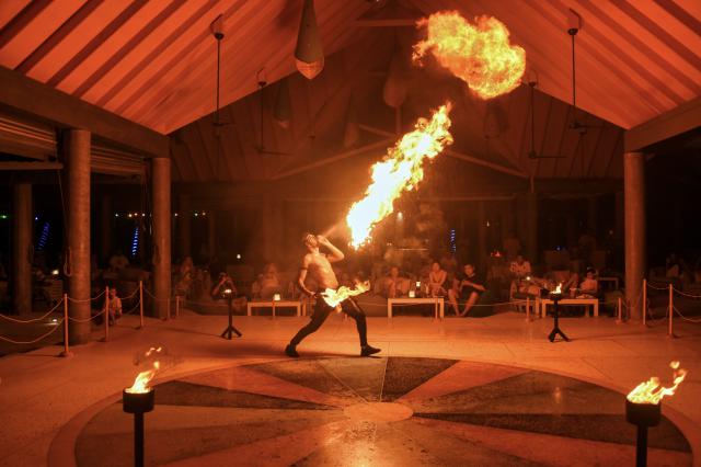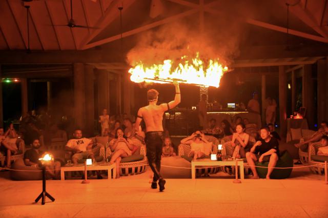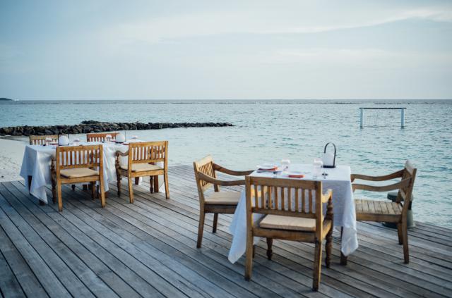 Jaafaiy餐厅使用早晚自助餐(用餐时间:早餐07:00-10:00;午饭12:30-14:30;晚饭18:30-21:30)。晚餐也可以去Raiyvilla餐厅,可以享受一次三道晚餐,或者给USD40美元的额度,自己点餐;