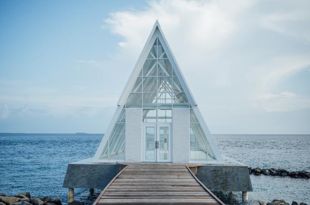 这座岛屿正在努力营造一种美丽的拍照氛围,海上有一座婚礼教堂,全透明玻璃的价值非常高。