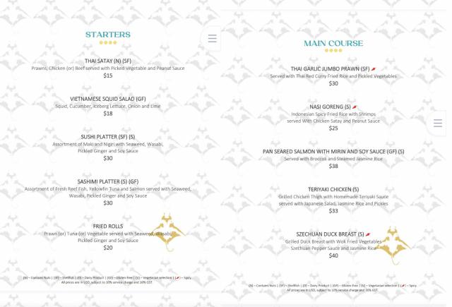 我要了一份Raiyvilla餐厅的菜单,真的不贵。基本上一道菜15-40块钱,两个人吃80块钱,不会让你贴太多钱。