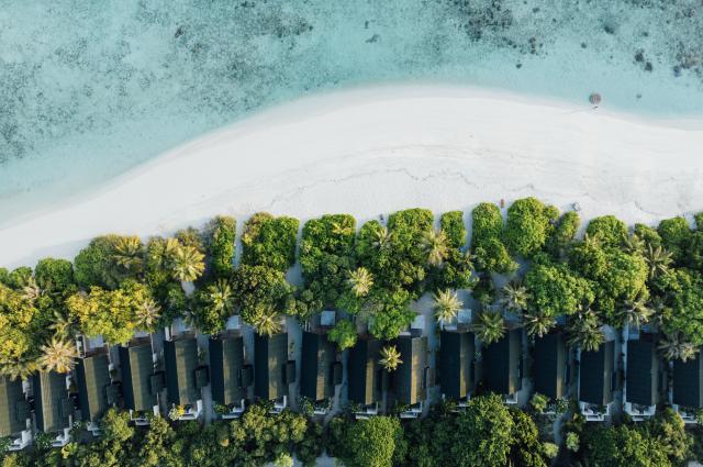 我们可以发现,芙拉薇丽是一个相对完美的马代岛屿(外观),其环沙率为100%。环沙率意味着岛屿周围的圆圈被海滩包围。