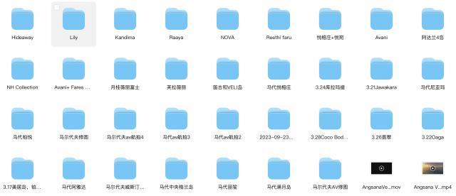 让我们看看我们去过的马尔代夫岛。有几个岛还在同一个文件夹里(如阿达兰4岛、榕树悦苑、双安纳塔拉)。...)。