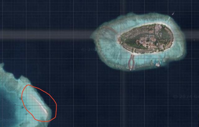 其次,这个岛上有一个防浪堤。我会在潮汐落下的时候再拍一张航拍。我们可以看到下图9:00到12:00的方向,7:00的方向,防浪堤。