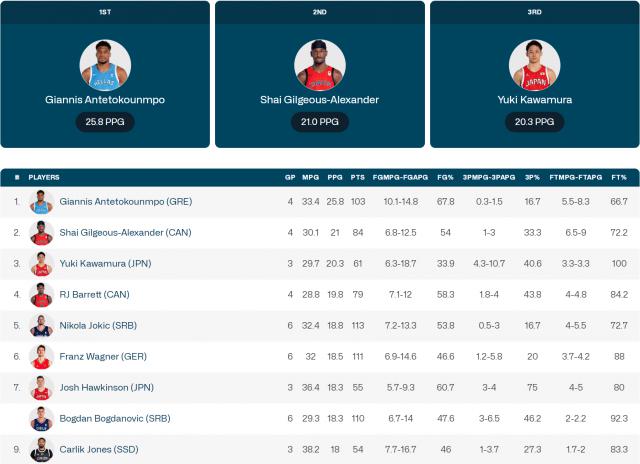 2023 年度篮球世界杯,河村勇辉平均场均 13.6 分 2 篮板 7.6 助攻 2.8 错误,三个准确率:42.9%,33.3%,78.6%。2024 年度巴黎奥运会,场均 20.3 分 3.3 篮板 7.7 助攻 1 断球 3 错误,三个准确率:33.9%,40.6%,100%。在得分榜上排名第三。