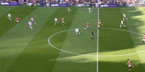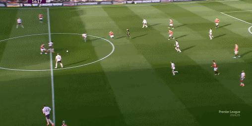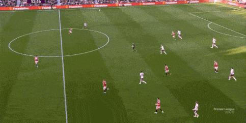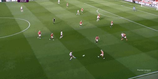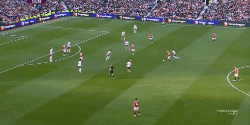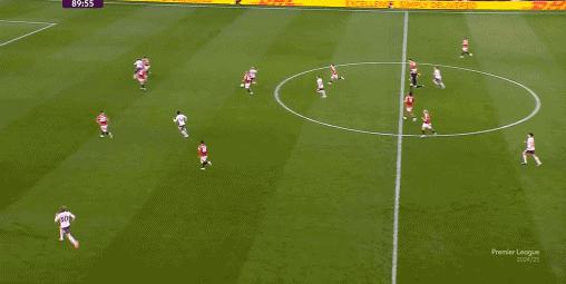 曼联队在前场完成了反击,迅速形成了攻击,然后打出了第二个反超分球: