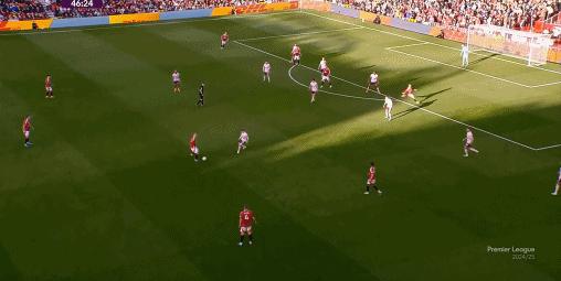 在球员的努力下,主教练的战术意图很快就取得了成绩,结果的变化自然激发了球员的进一步努力。因此,在那之后,曼联的进攻力度越来越强: