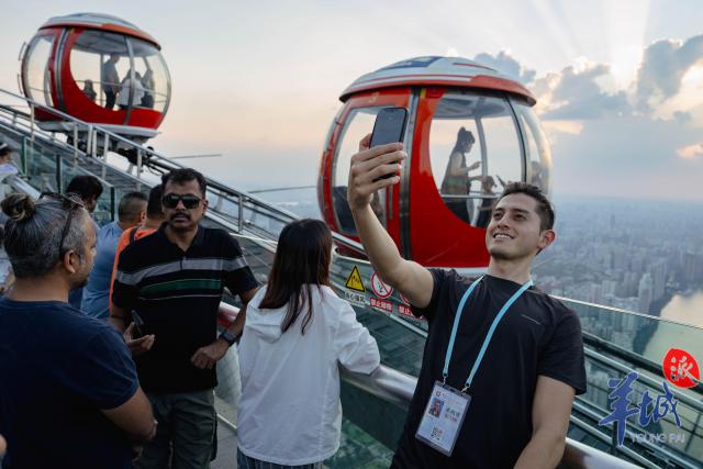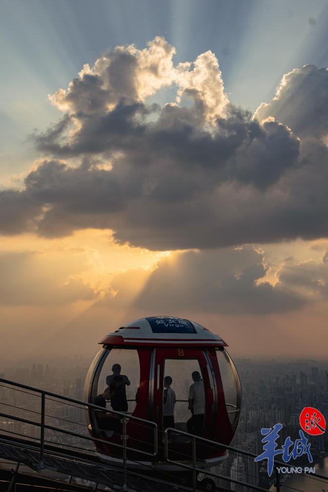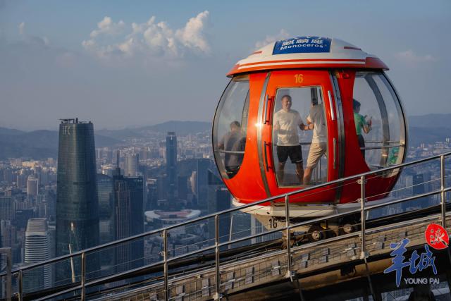 在广州塔,来这里的外国商人不在少数。登上塔,坐摩天轮,感受世界上最高的“跳楼机”,外国商人对这些项目充满了喜悦。“外国人”玩项目,“老广”拍外国人,场景相得益彰。