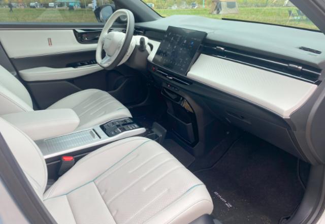 极湃 2 内饰设计很简单,但是融合了舒适和技术,并且采用了大规模的软包覆盖,展现出更高的品质感。车里使用了 9.4 英尺液晶仪表盘和 12.8 英尺悬浮式中控大屏幕,结合现代椭圆形方向盘和 11.5 英尺 HUD 抬头显示。它还配备了智能香氛系统和 BOSE 音响系统,进一步增强了驾驶的气氛和精致的出行感。