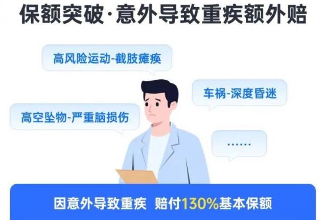 意外造成第一次大病,可多赔偿。 30% 基本保额。
