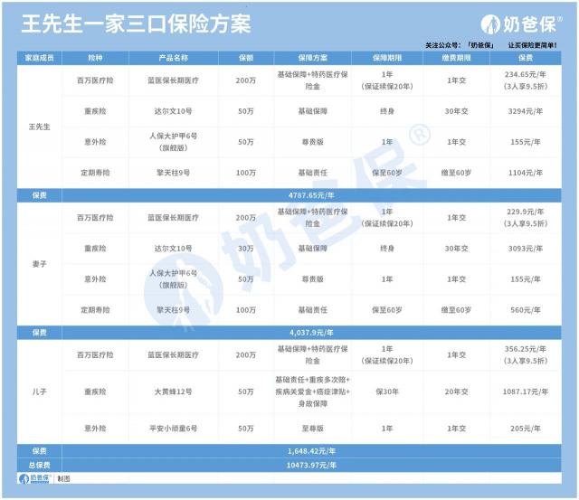 所选商品的性价比也很高,整体都很符合王先生一家的保障需求。