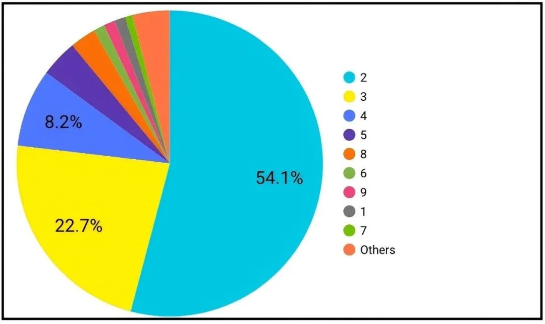 55%的公司(142家)拥有拥有高等教育学位的团队成员;