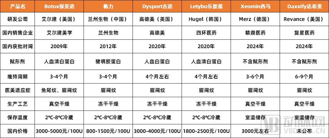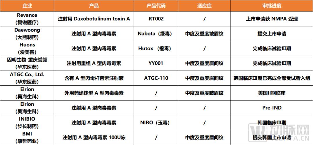 图3. 国内目前已获批6款肉毒素产品(数据来源:公开资料)