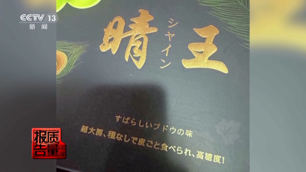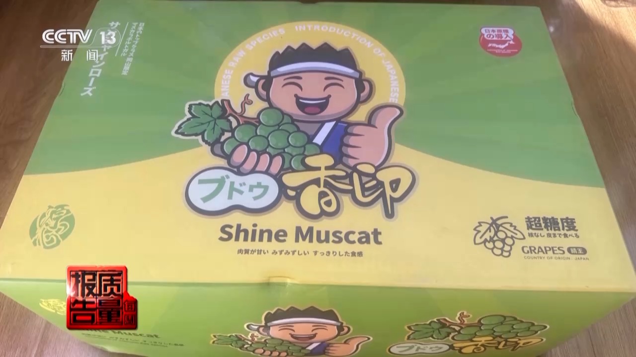 记者随机购买了一盒商家销售的所谓“进口阳光玫瑰”,看到产品外包装上有清晰的日本文字和卡通人物,最引人注目的是“香印”二字。销售人员告诉记者,这个品种叫“香印青提”,“晴王”品牌都是从日本进口的葡萄品种,也可以统称为“进口阳光玫瑰”。